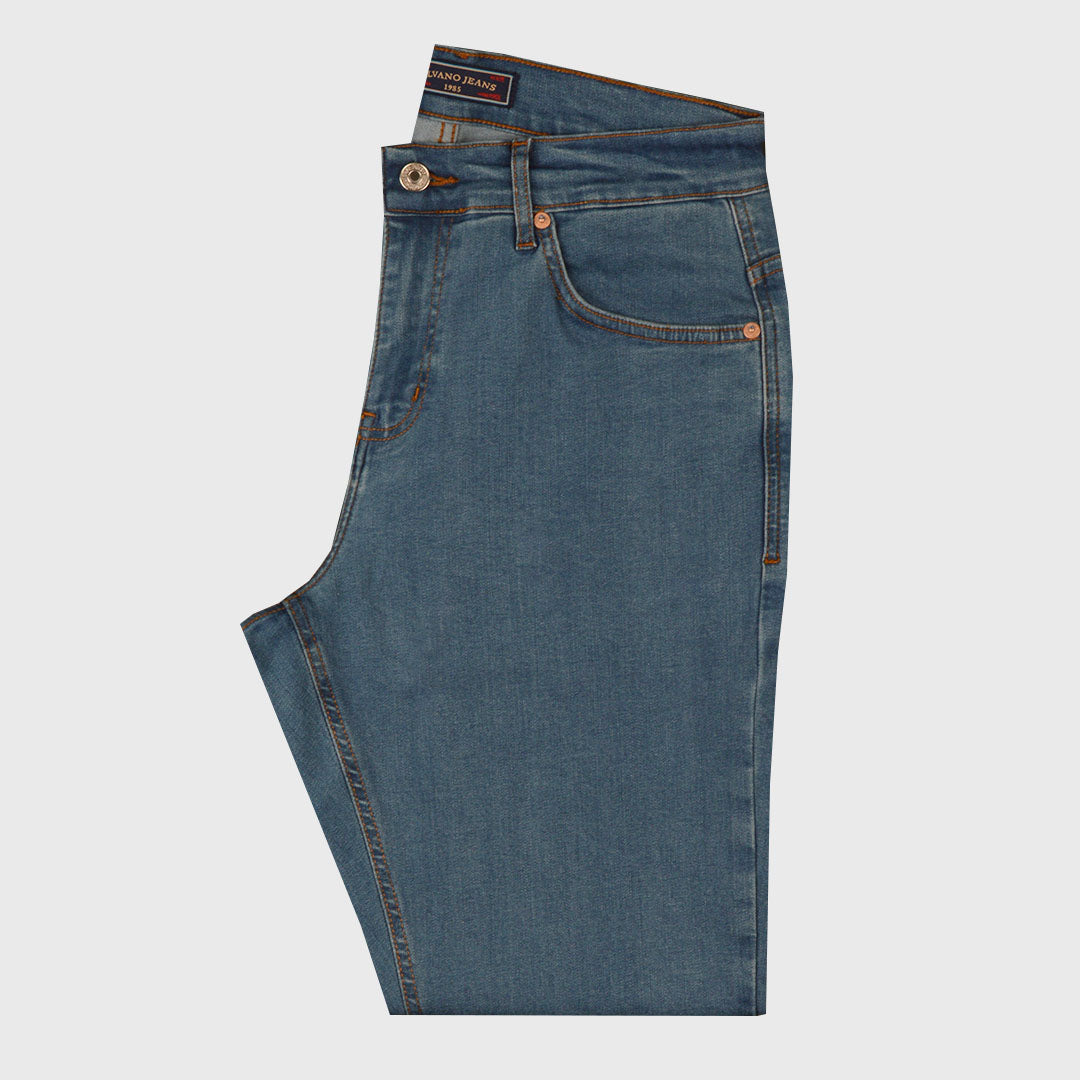 بنطلون جينز رجالى سيلفانو بخصر عادى وقصة ستريت فيت لون ازرق