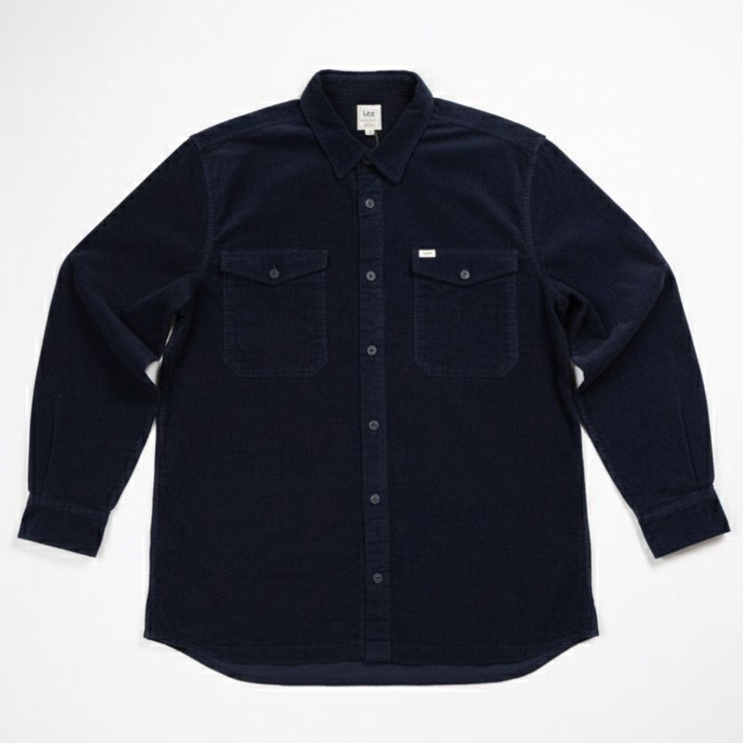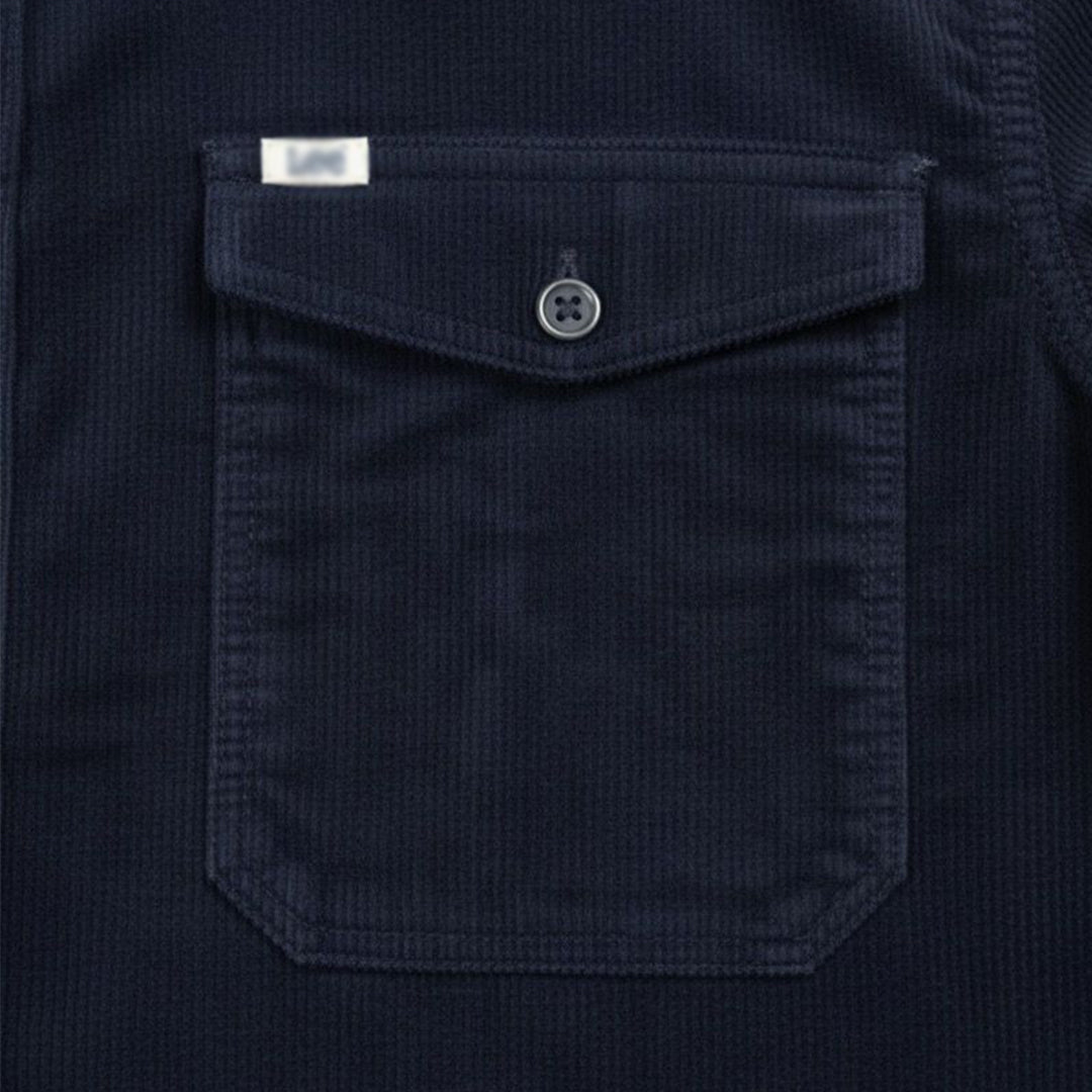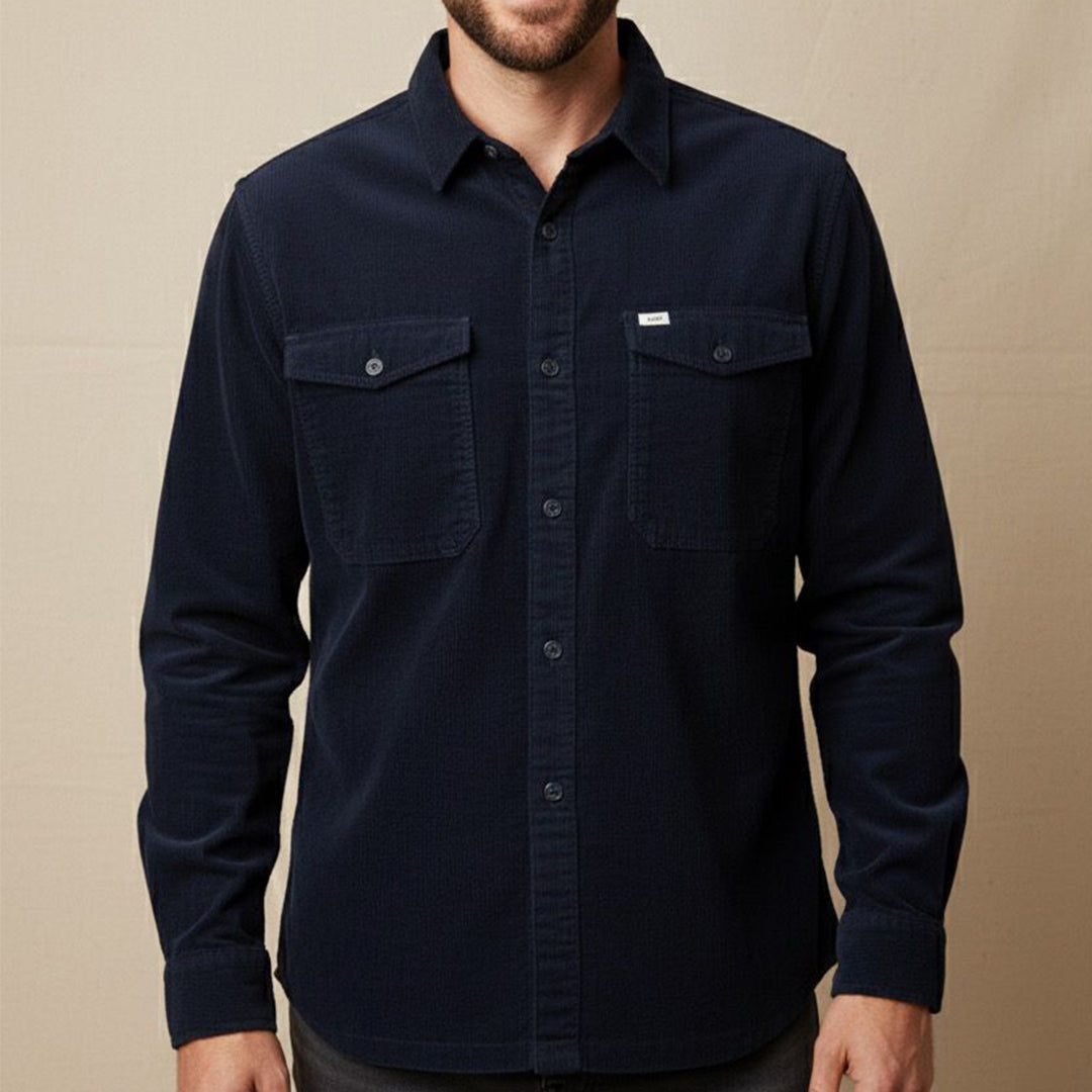 قميص رجالى قطيفه مضلع ساده بجيوب امامية لون كحلي