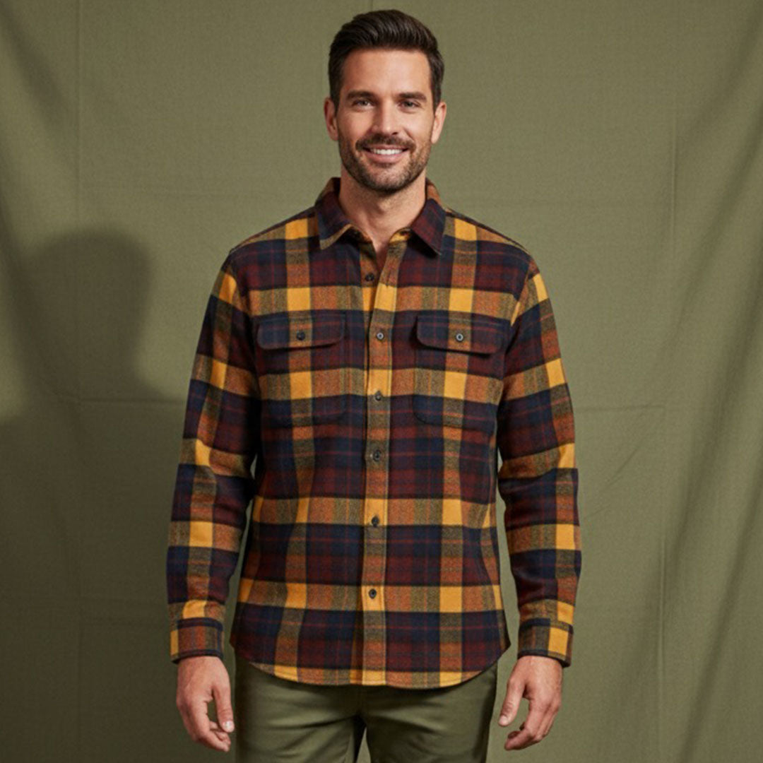 قميص رجالي شتوي مصمم بتفاصيل راقية بجيوب امامية واكمام طويلة بنقشه كاروهات تتميز بدمج الوان دافئة مما يمنحه مظهرا شتويا مصنوع... اقرأ المزيد