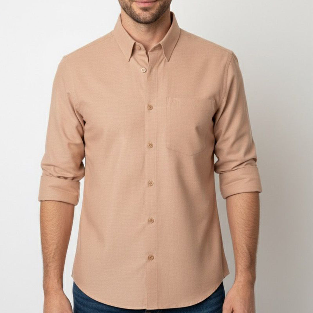 قميص كاجوال رمادي أكسفورد سادة لون بيج