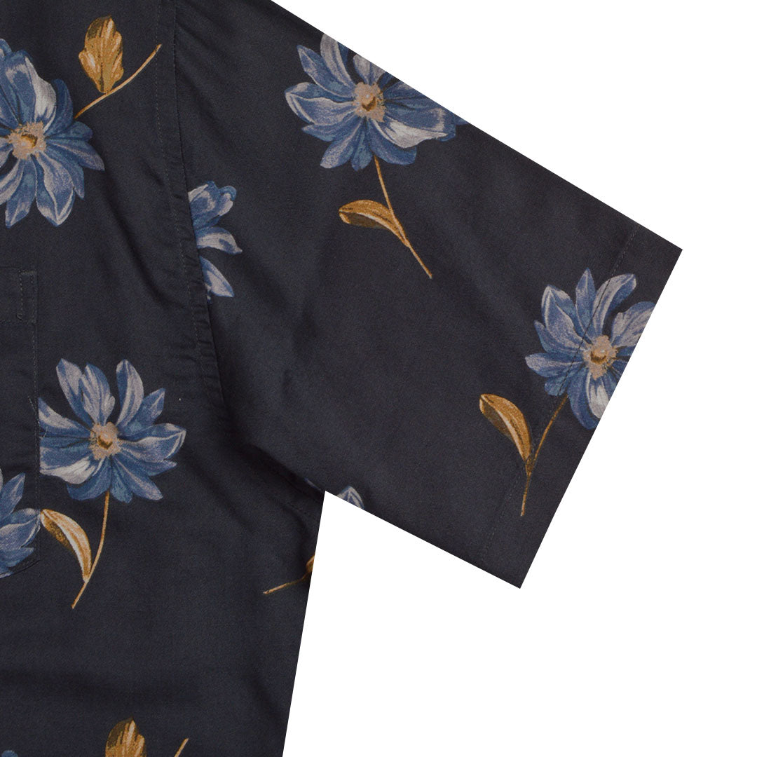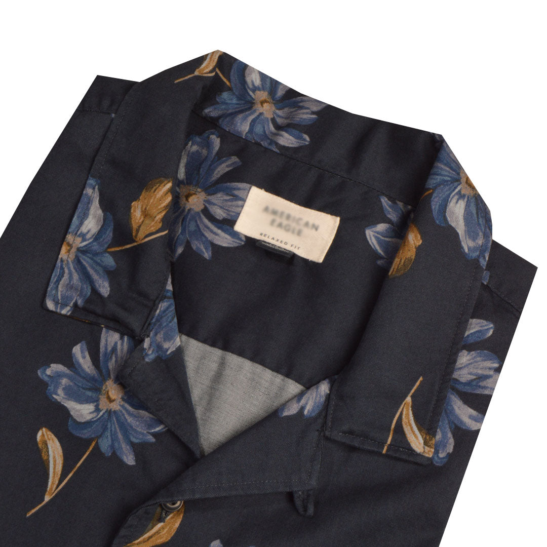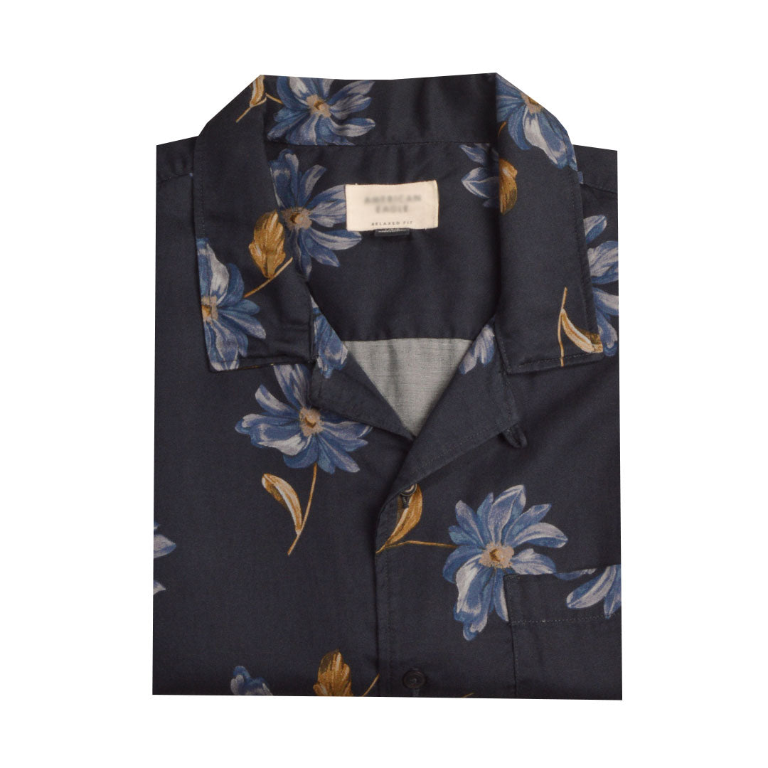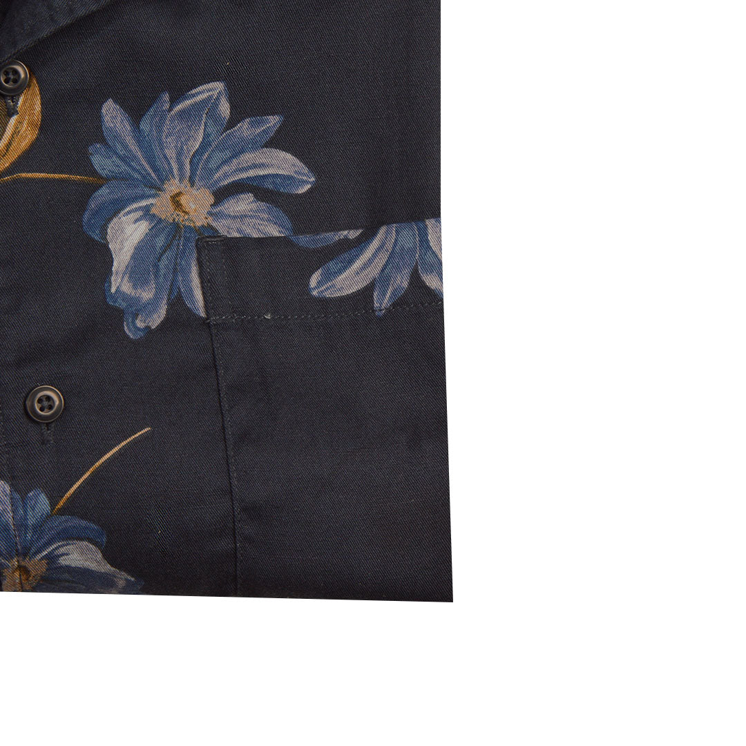قميص رجالي نص كم بجيب نمط مشجر لون كحلي