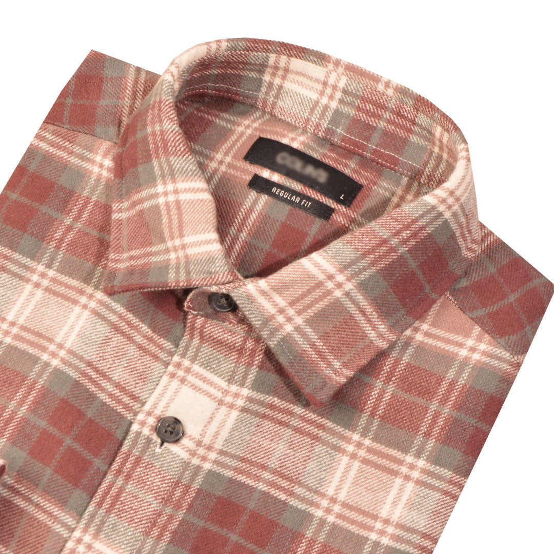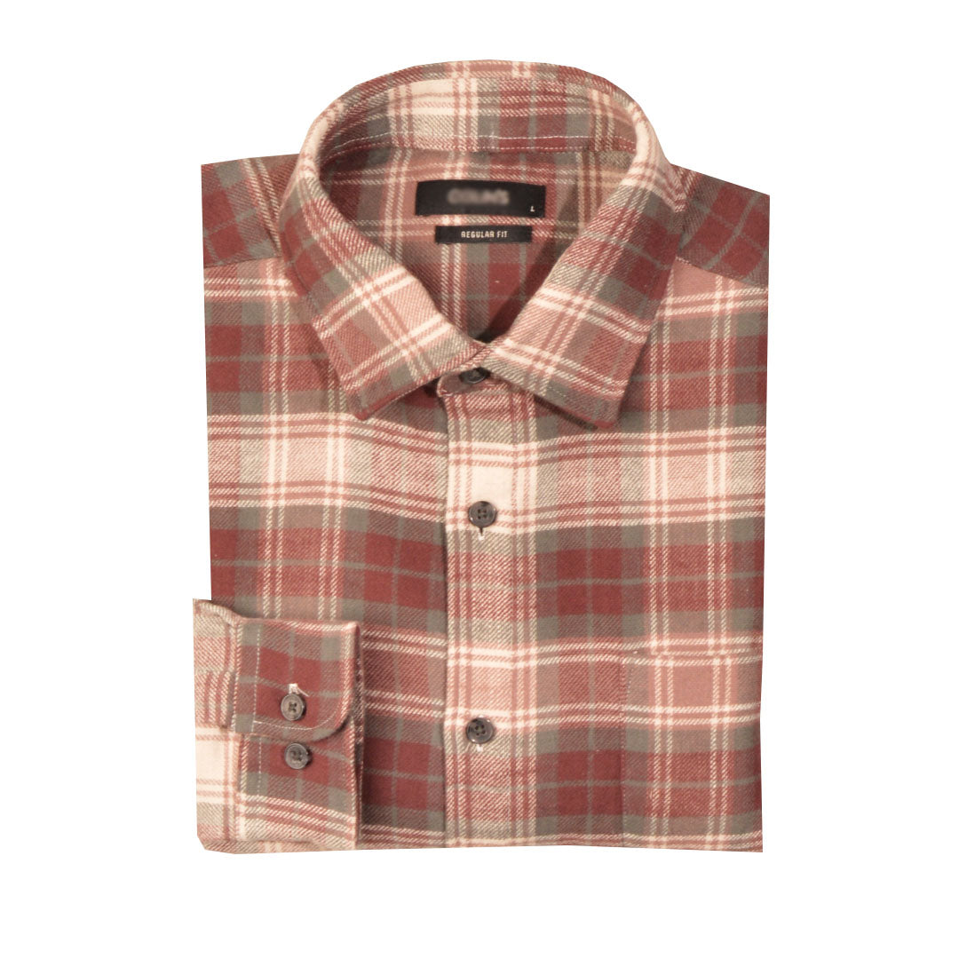 قميص شتوي رجالي كاروهات بأكمام طويلة وياقة عادية لون نبيتي