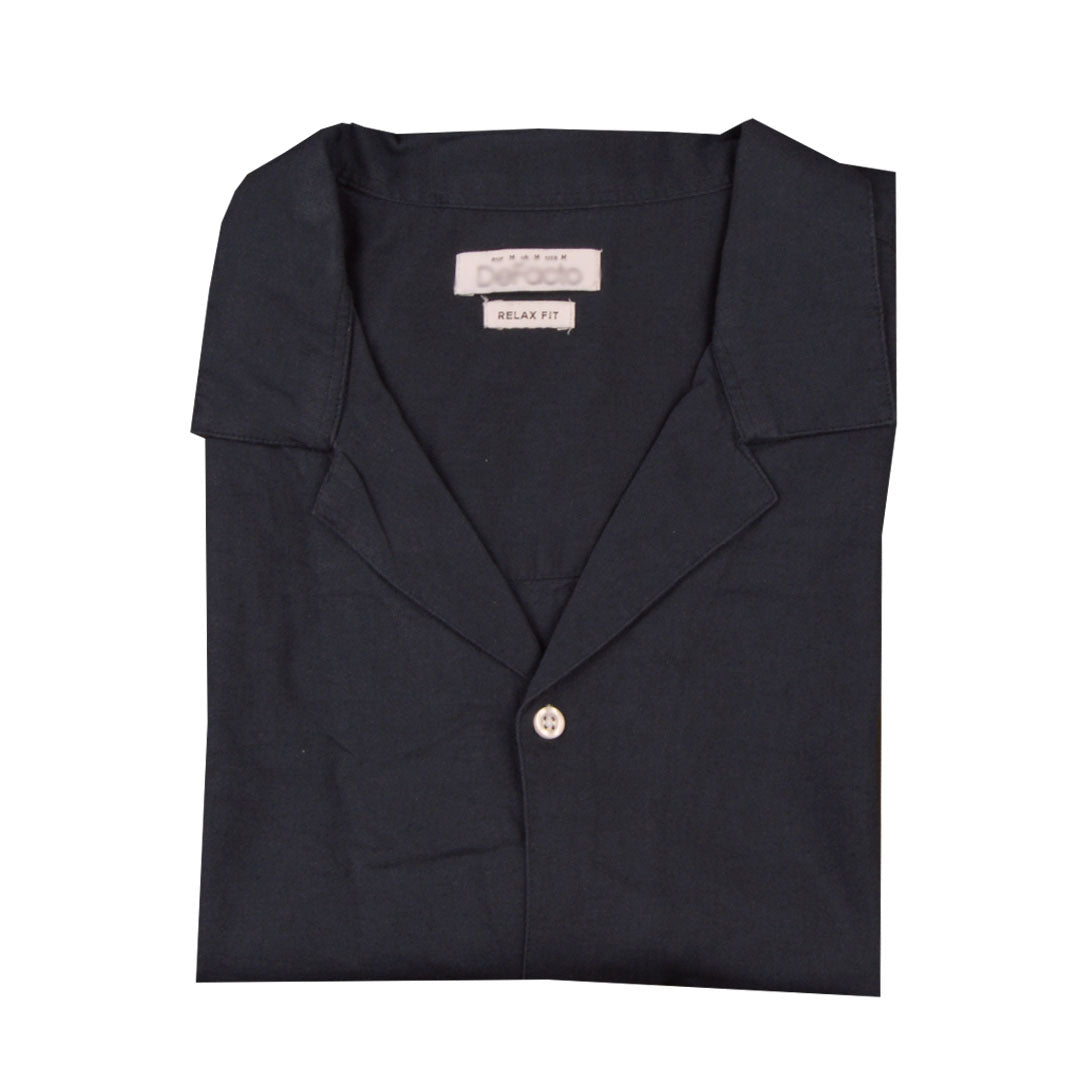 قميص كتان رجالي نص كم ساده قصه عاديه ريلاكسيد فيت لون كحلى